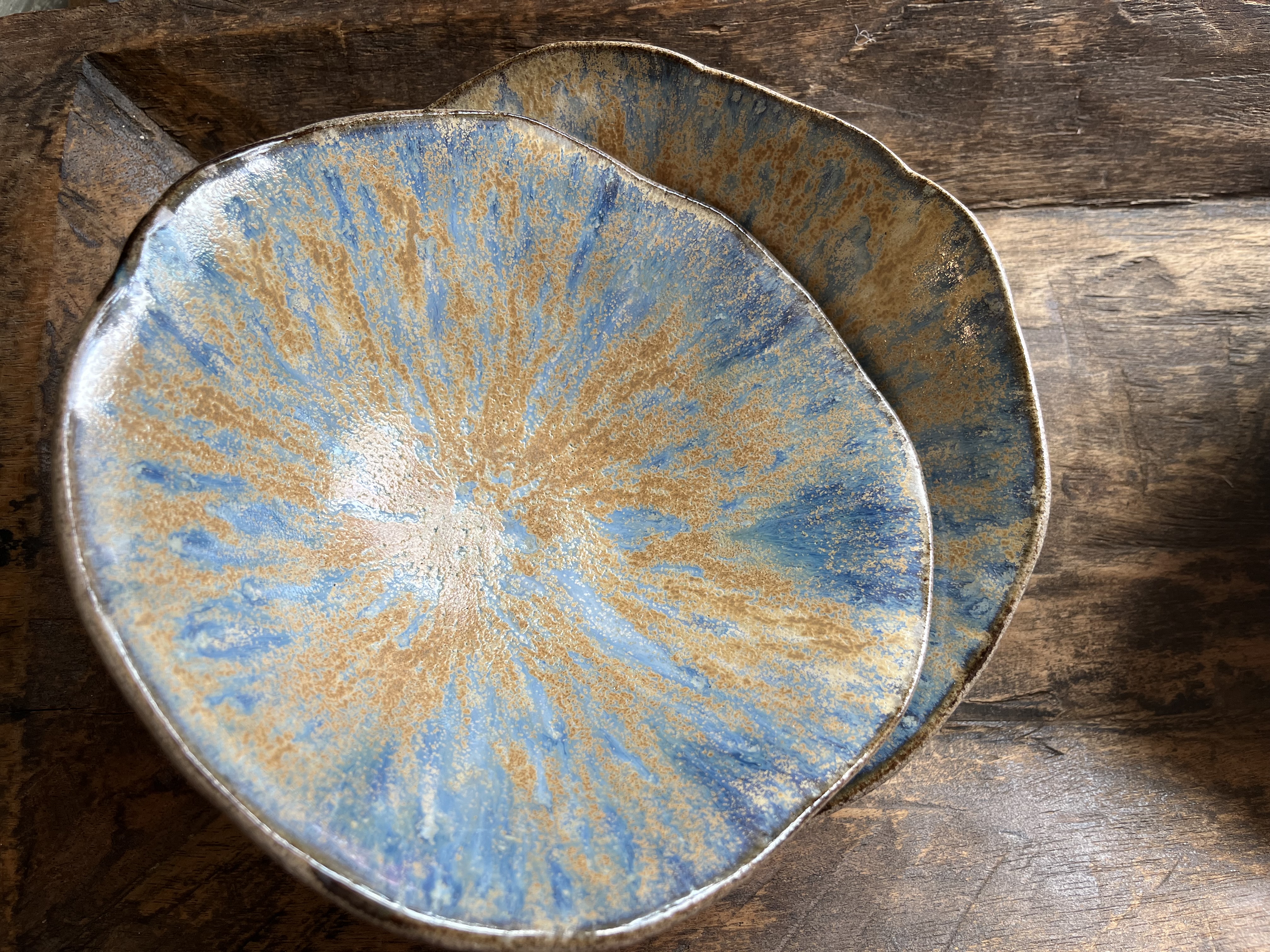 Nadat het werk in de keramiekoven biscuitgebakken is, wordt er meestal, in een tweede sessie, een mooi kleurtje glazuur aangebracht.